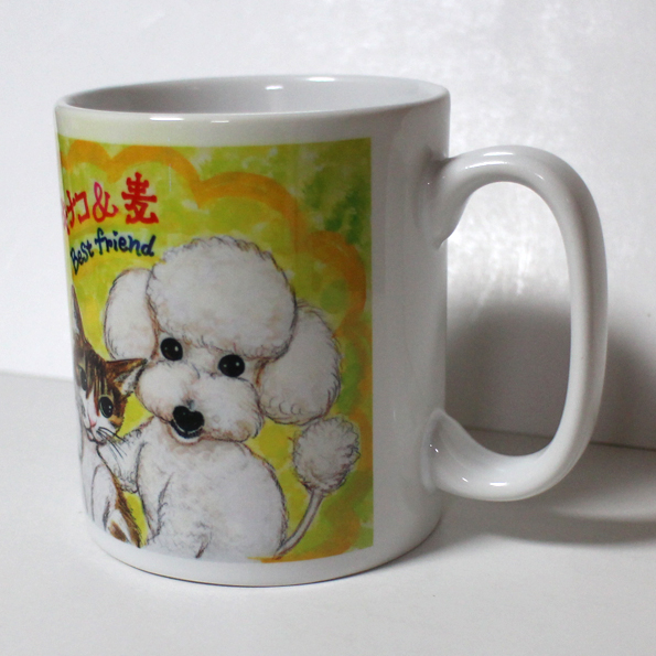 似顔絵をマグカップにする事も受け付けております。似顔絵製作は、写真からプロの絵かきさんが似顔絵を手書きで描きます。人物、ペットを色紙に描きますので、色紙(原図)のご購入も可能です。色紙、マグカップを合わせて、プレゼントにいかがでしょうか。似顔絵製作は、お問合せください。